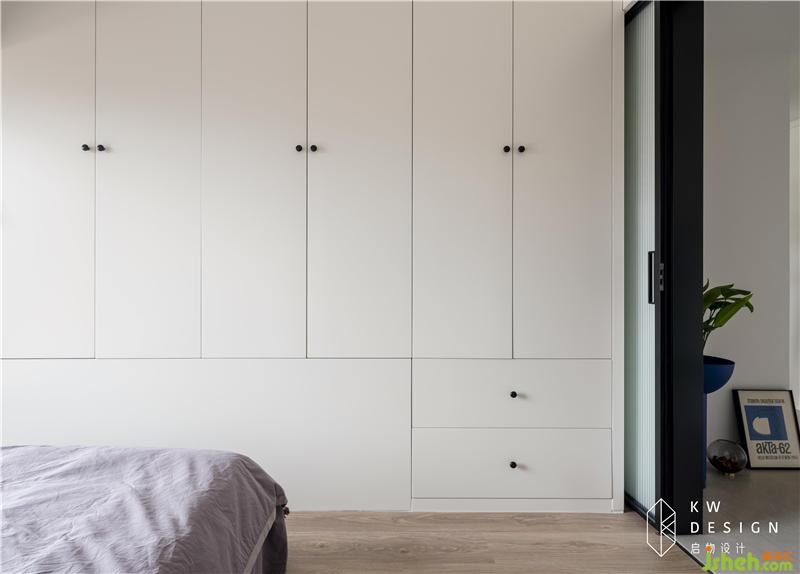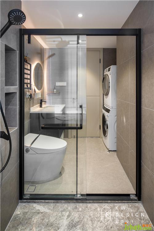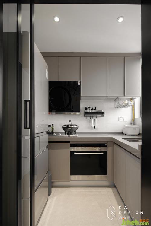 廚房門由原來的650mm擴(kuò)大為1090mm,改成玻璃推拉門,完善洗炒切功能,流暢動(dòng)線。小廚房也可以很方便。高級(jí)灰簡約大氣。