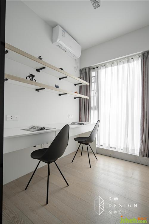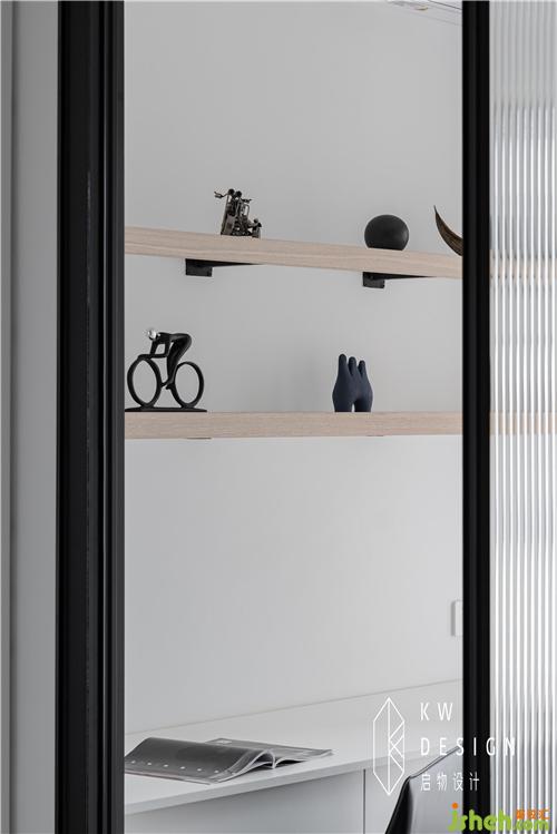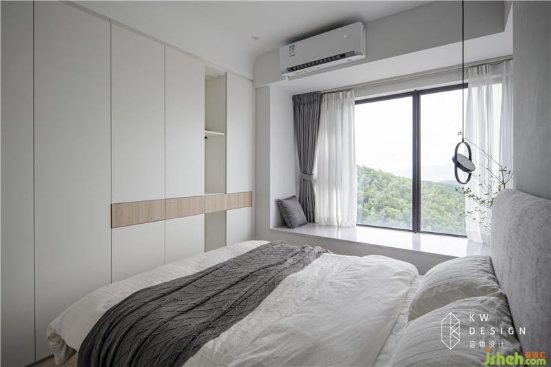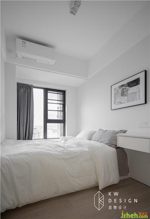 榻榻米房也是黑白灰主調(diào),榻榻米和飄窗齊高,一米五大床秒變兩米+,榻榻米內(nèi)設(shè)柜子是隱形收藏。室內(nèi)設(shè)計(jì)師的簡(jiǎn)約設(shè)計(jì)是個(gè)平平無(wú)奇的看得見(jiàn)風(fēng)景的房間。