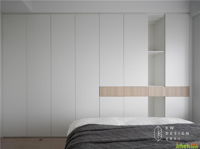墻角弧形設(shè)計(jì)呼應(yīng)客廳的曲面設(shè)計(jì),降低家的銳度。少量木面的加入同樣呼應(yīng)客廳電視柜木面設(shè)計(jì)并降低整個(gè)空間的清冷感。內(nèi)設(shè)彈簧無(wú)把手衣柜設(shè)計(jì),再也不用擔(dān)心迷糊間撞到把手了。