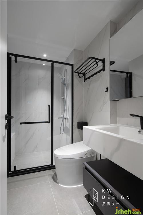 衛(wèi)生間延續(xù)全屋主基調(diào),以黑白灰為主調(diào),經(jīng)典高格。洗漱臺(tái)一體盆體驗(yàn)感極好。寬大的仿雅士白墻磚為私密的空間增添一份優(yōu)雅。