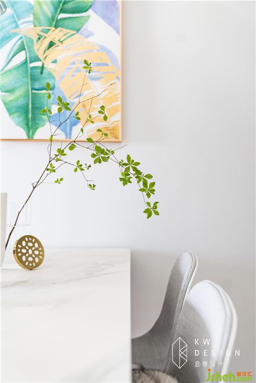 透過餐桌的綠植還可以窺探到另有一番風味的臥室。