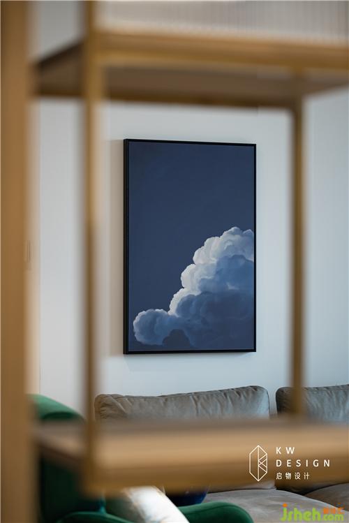 藍白色同色系掛畫簡約美觀乃女主人的細膩之作。