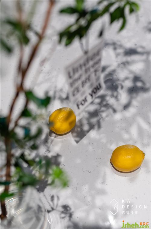 茶色系異形吊燈的組合,綠色植物的擺放增添設計感和生機。