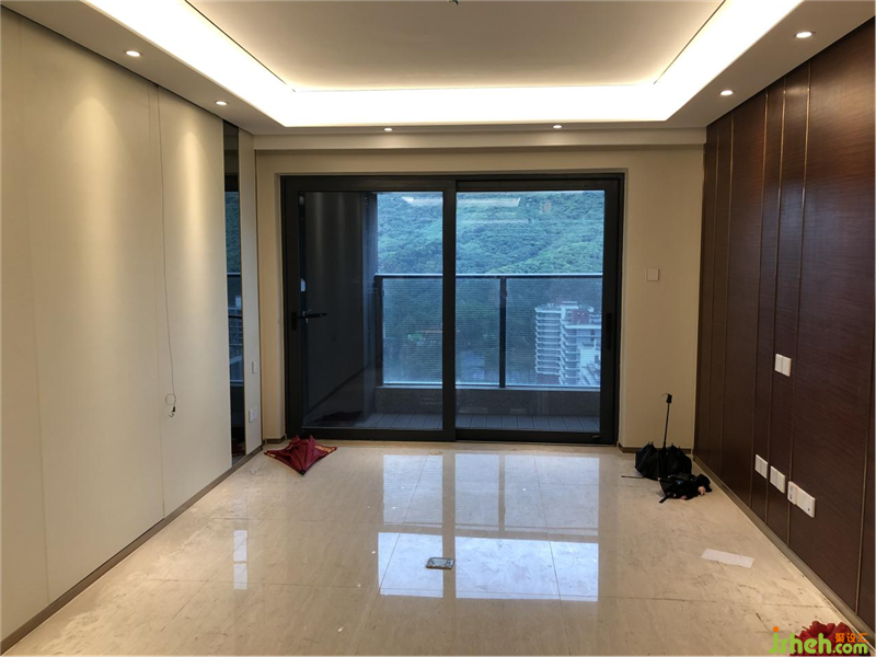 原精裝材料簡陋,風(fēng)格陳舊,輕奢風(fēng)格的吊頂搭配這豬肝紅木飾面,難以言喻。