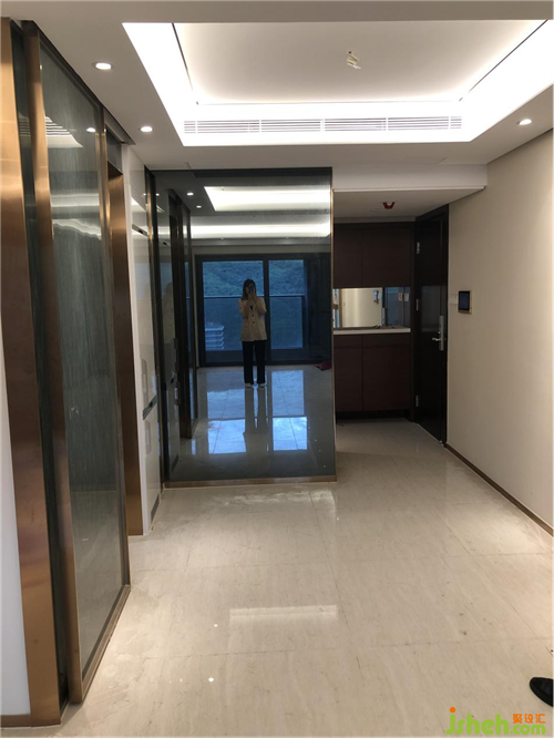 原精裝餐廳效果,大塊落地灰鏡讓人有置身公共餐廳的錯(cuò)覺,后期添置家具只會讓這面墻凸顯空間的凌亂,沒有任何美觀和功能效果。