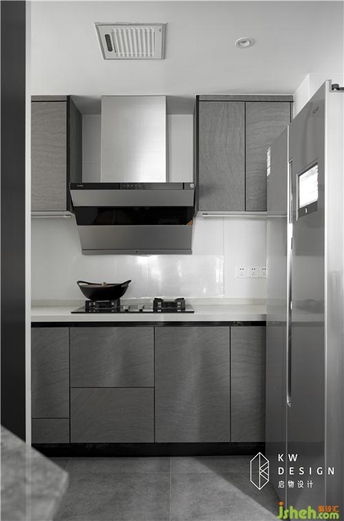 ?廚房改變進(jìn)門(mén)方向,打通陽(yáng)臺(tái),引進(jìn)光線打造流暢的L字形廚房動(dòng)。建超薄墻垛擋住冰箱空隙,三扇聯(lián)動(dòng)推拉門(mén)開(kāi)闊與餐廳的連接。借用廚房空間做入墻式鞋柜,鞋子再也不用堆在門(mén)口啦。