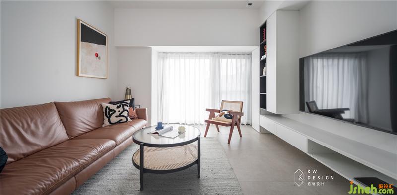 電視柜采用鏤空懸浮的形式消弭收納柜的厚重感,讓整體空間更加輕盈明亮。