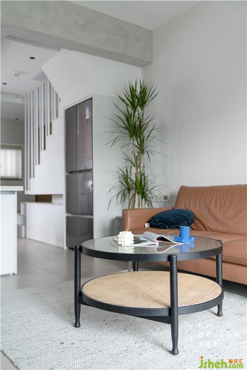 作為廳的中心位,大部分茶幾無形中切割了寶貴的視覺空間,選用長虹玻璃和八角藤編的通透材質帶來理想中的靈動。