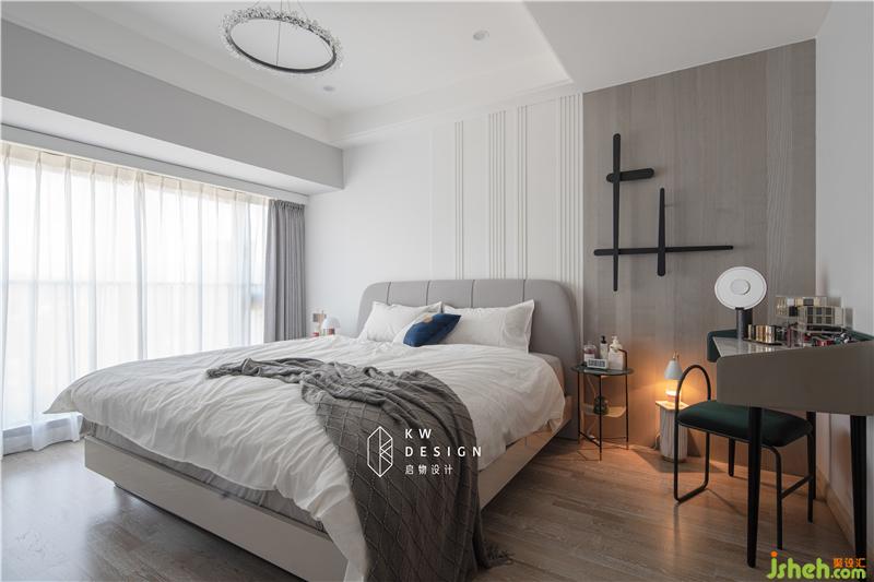 搭配全屋通刷的淺灰色墻面,改用淺色木地板,使空間清新素雅。
