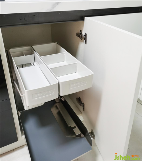 爐灶右下方做聯(lián)動拉籃,放調(diào)料瓶。