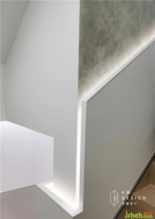 樓梯扶手外圍加燈帶附硬度高好打理的亞克力材質(zhì),面光的洗墻效果增加拾級而上的儀式感。