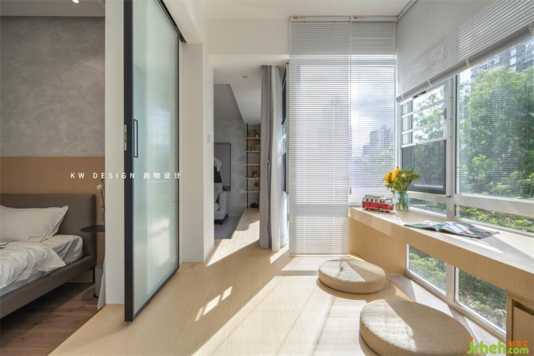 將老舊露臺納入室內(nèi),沿窗設(shè)置可臥可坐的休閑平臺,激活了整個北面的窗邊景色,讓陽光可以穿透進室內(nèi)來。