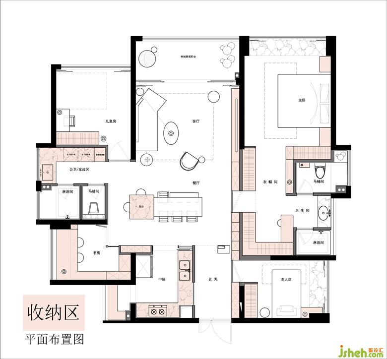 1:因?yàn)樾录抑皇切煽谧?,把原本的小?yáng)臺(tái)納入主臥,增加出三分離衛(wèi)生間、衣帽間及梳妝臺(tái),同時(shí)保留客房的基本功能。