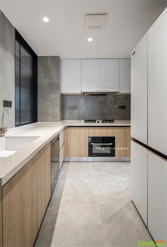 L型廚房除了功能上的完善,整體是極簡的調(diào)性。色調(diào)上也比較明亮清新。
