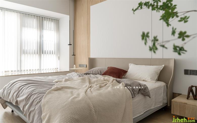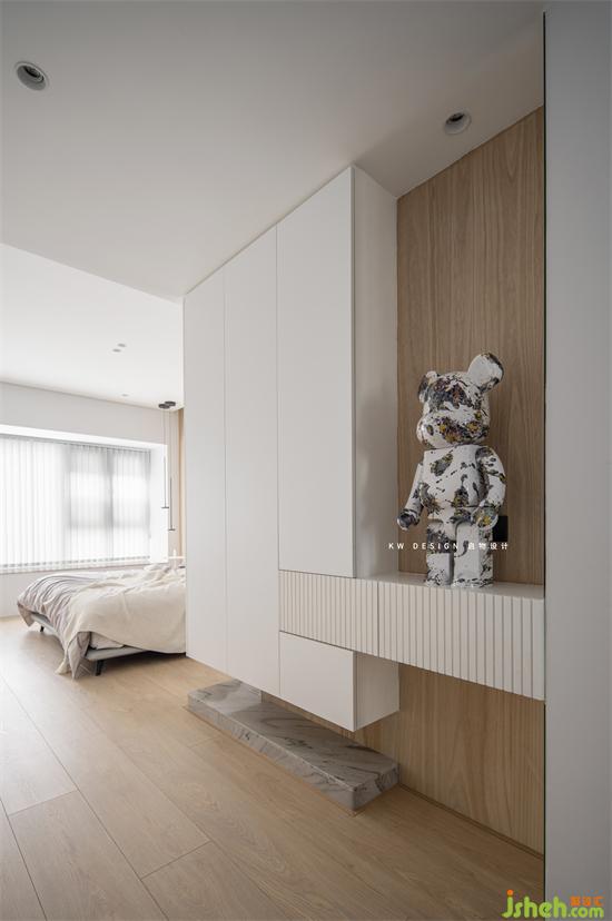 開放格和床邊柜的連貫設(shè)計,使空間更極簡和整體,視覺延續(xù)性更好。