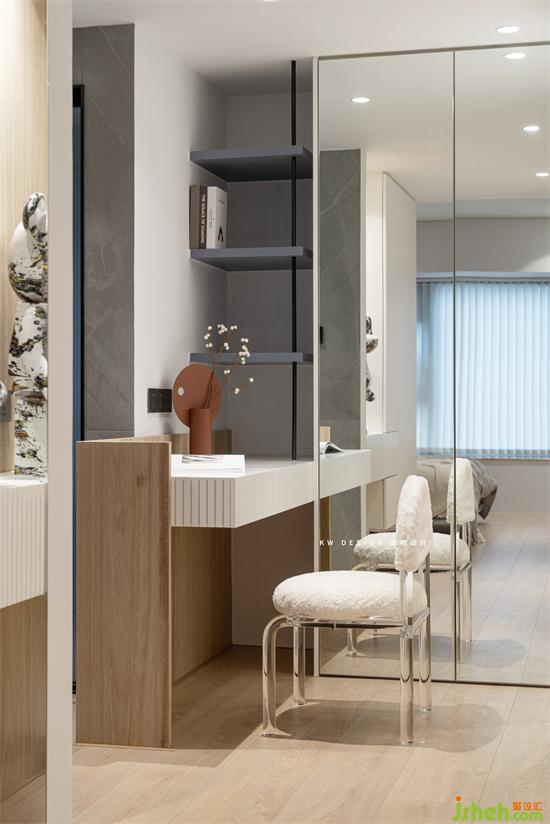 細節(jié)處將鏡面元素納入端景,衣柜門等局部,放大空間以外,點亮視覺感受。