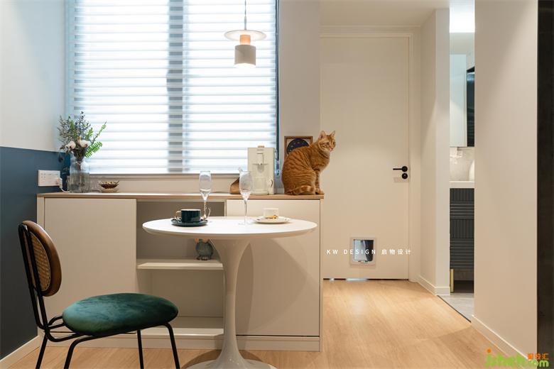 排除方形餐桌,改用圓形餐桌,不僅空間更開放,貓咪活動無死角。而且小資閑逸情調(diào)調(diào)起來了。