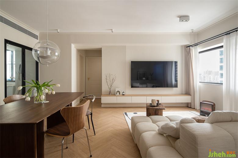 全屋通鋪人字紋木地板,與簡(jiǎn)約的天花對(duì)比出空間張力,空間上以清新奶白的溫潤(rùn)材質(zhì)和色系為主,景新花園家裝設(shè)計(jì)點(diǎn)綴深沉棕的樸實(shí)質(zhì)感,渲染人文休閑氣韻和清透無(wú)壓的愜意氛圍。