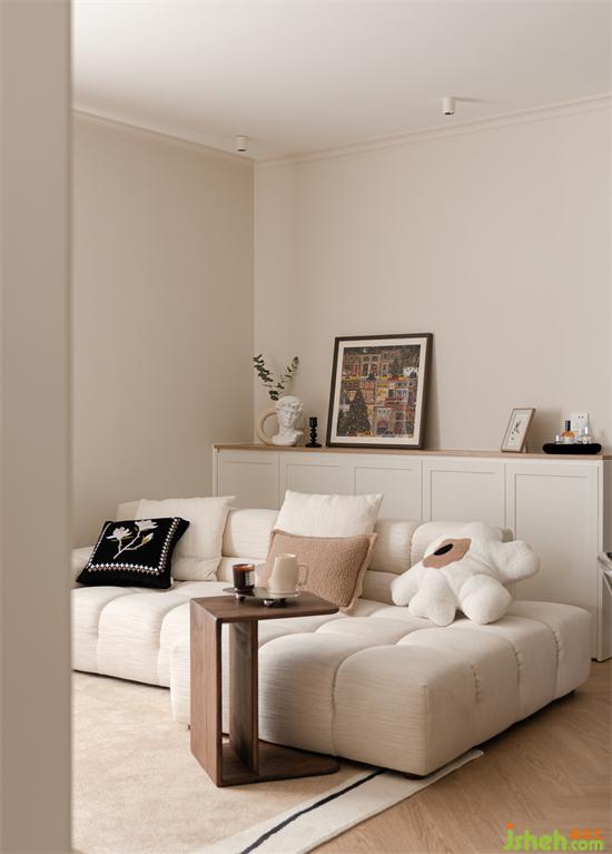 沙發(fā)由兩個(gè)1.2m的豆腐塊組成,輕巧軟糯的造型方便屋主根據(jù)心情喜好自由組合,改變或移動(dòng)功能區(qū)。