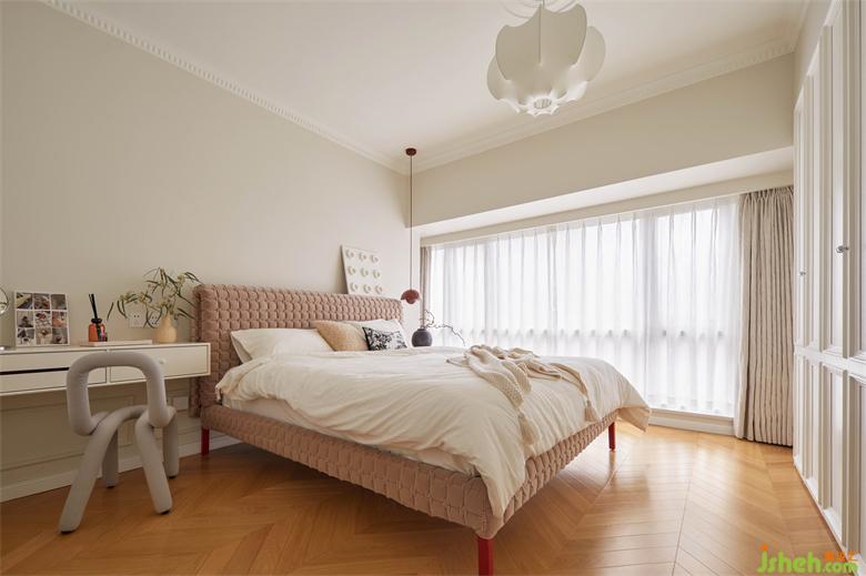 以軟裝烘托意境來打造輕法式浪漫。一張獨特又溫柔的Ruche床,一盞夢幻復古的裝飾吊燈就能圍合個性又溫馨的睡眠區(qū)。