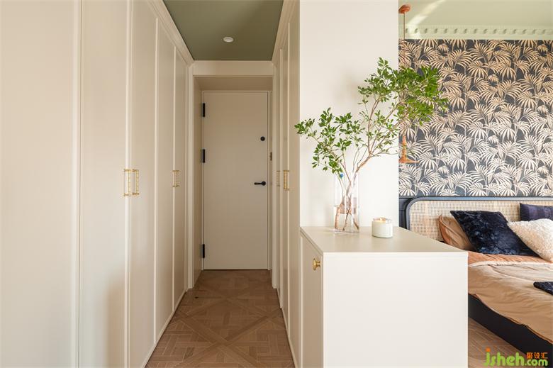 金色竹節(jié)的美好蘊(yùn)意藏在裝飾畫和衣柜門把手上,裝點(diǎn)精致空間。
