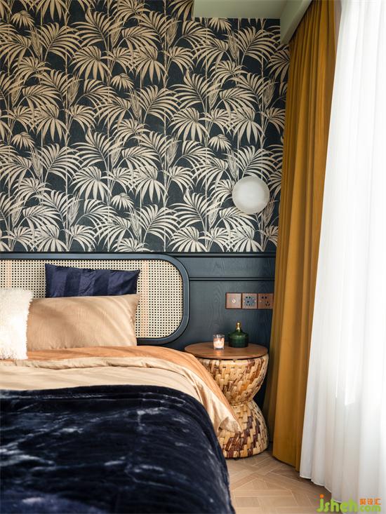 姜黃沒有檸檬黃的張揚(yáng),也沒有土黃的暗沉,明亮得恰到好處,絲絨窗簾的點(diǎn)綴平衡南洋風(fēng)情與復(fù)古。