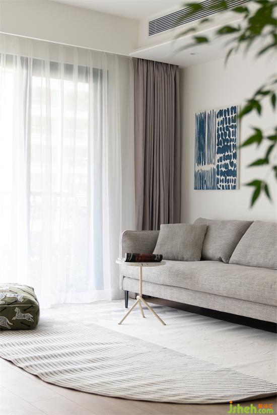 女主人希望客廳是兼具書房、兒童游樂和親子互動的職能。深圳豪峰園家裝設(shè)計以活動邊幾代替?zhèn)鹘y(tǒng)固定茶幾,沙發(fā)也選擇了比常規(guī)寬度更小的尺寸,親膚柔軟的棉麻布藝材料圍合鋪陳,為空間保留最大化的舒適活動范圍。