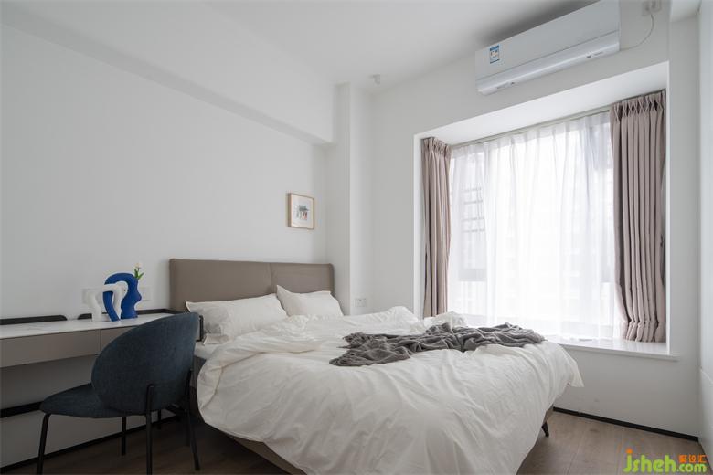 長輩房由沉穩(wěn)灰營造簡約素雅氛圍,深圳豪峰園家裝設(shè)計(jì)小幅的人物插畫增添活潑趣味。
