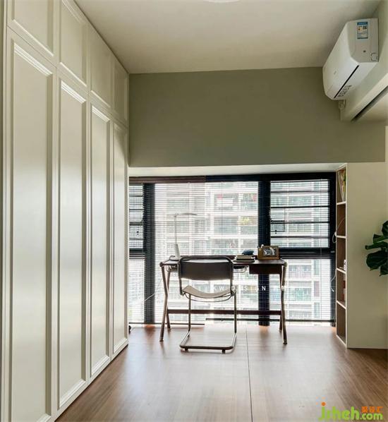 多功能房抬高20公分做地臺,兩邊預留收納和藏書空間。棲游家園家裝設計父母或朋友過來暫住,只要挪開活動書桌,鋪上床墊,合上兩邊的推拉門就實現(xiàn)獨立客臥功能。