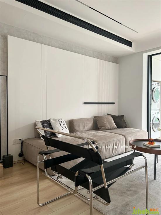 山居歲月家裝設(shè)計(jì)白色線條格柵造型與不規(guī)則藝術(shù)肌理墻面的錯(cuò)落布置簡(jiǎn)約立體沙發(fā)背景,線性燈源和流暢形體的功能家居圍合休閑領(lǐng)域,簡(jiǎn)單幾何形態(tài)貫穿均衡統(tǒng)一的形式美學(xué)語(yǔ)匯。