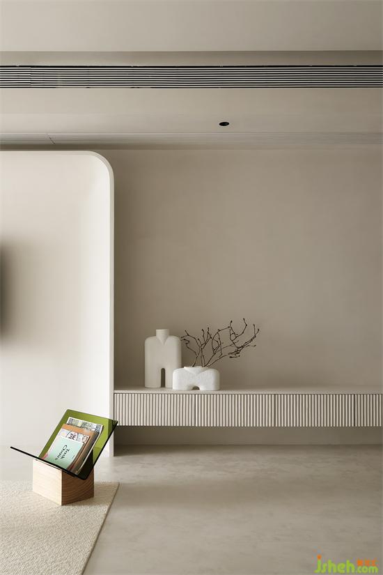 為了保證整體的統(tǒng)一,除了墻面和天花,在定制柜體上也刷了微水泥,而地面考慮維護(hù)和打理方便鋪設(shè)仿微水泥磚,家裝設(shè)計(jì)美縫是VI先生找的馬貝總代,去現(xiàn)場(chǎng)對(duì)了四次顏色,最終調(diào)了和磚一樣的顏色,達(dá)到了超完美的契合效果。