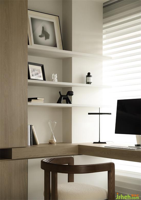 書(shū)桌窗戶(hù)朝西擁有超美日落的景觀視野,搭配溫柔的垂直簾,家裝設(shè)計(jì)絕美光影治愈每個(gè)愜意午后。