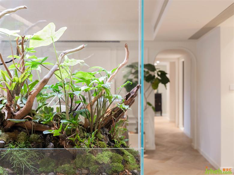3. Germany希望有個(gè)驚艷的門廳,通透有層次的。家裝設(shè)計(jì)連接茶室做了一組半高的雜物柜上面設(shè)置Germany喜歡的生態(tài)缸作為玄關(guān)端景,避免門對(duì)廳的沖突同時(shí)也放大了客廳沙發(fā)背景的空間比例。