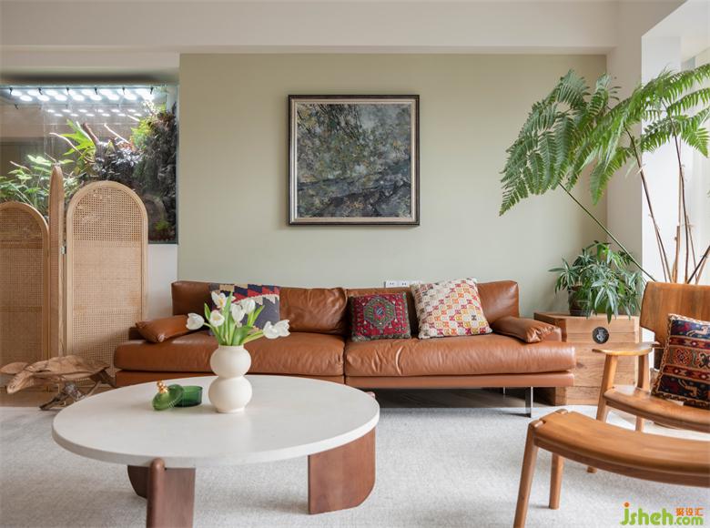 拜訪Germany的新家仿佛逛博覽館,除了綠色的生態(tài)景觀,還有許多她旅游時(shí)從世界各地淘回來(lái)的極具東方藝術(shù)氣息的工藝品。家裝設(shè)計(jì)休閑客廳一面是品味與藝術(shù)兼?zhèn)涞年惲幸庀颍幻媸菒芤庾匀绲挠迫簧睢?