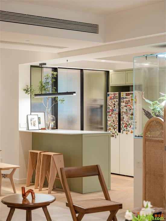 Germany家的公共空間移門都采用通透有質(zhì)感的超薄方格玻,遠(yuǎn)看像一副油畫(huà)。比起長(zhǎng)虹的順紋玻,小方格玻璃更具像素感和朦朧意境,家裝設(shè)計(jì)搭配黑色邊框非常適合輕復(fù)古調(diào)的空間。