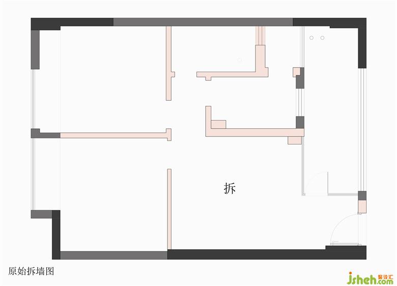 2. 規(guī)避公衛(wèi)門直對著公共過道,改門為東邊朝向,在兩邊過道盡頭分別設(shè)置了不同端景形式,使公共空間的視覺審美得以完整連貫同時也保證了洗浴空間的私密。