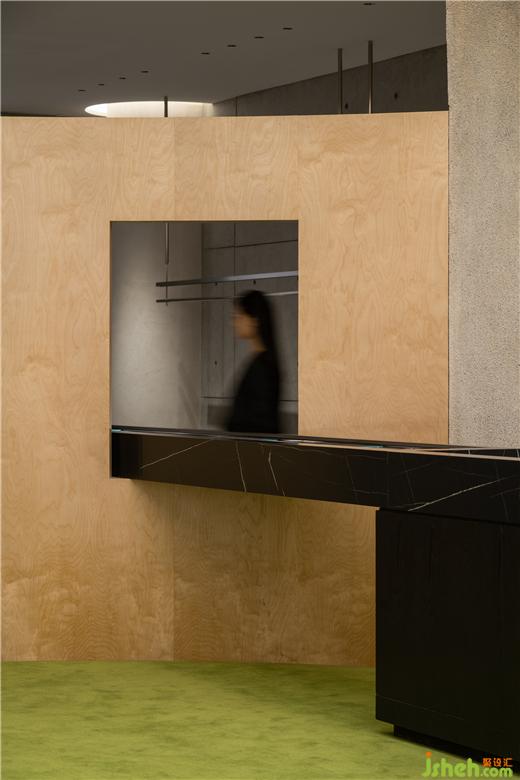 踱入其中,自然意象經(jīng)由材質(zhì)組合實現(xiàn)解構(gòu)與傳遞?;炷痢摻?、光在此融于一體,專賣店設計打破空間固有格局,從受眾體感出發(fā),完成空間氛圍營造,向進入者傳遞舒適而自如的場域信號。并通過貼合品牌品味與風格調(diào)性的軟裝選品、色彩配比實現(xiàn)具象感知承載,由表及里,于環(huán)狀空間之中縱延鋪開,傳遞屬于hug熟悉而充滿驚喜的觀覽體驗。