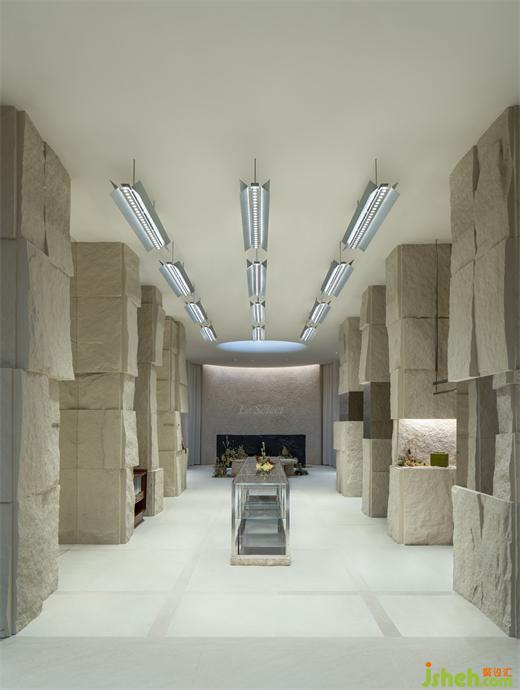 雖并非純粹的自然之物,卻能將自然界中帶有原始意向的極致美感,展廳設計通過大塊面的運用與陣列排布加以呈現。