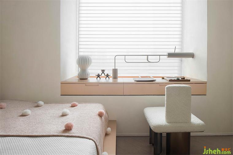 尺度內的包容性與尺度外的想象力,深圳共向設計都在窄小而狹長的主臥中被演繹出來。尺度內,用細節(jié)包裹極簡,尺度外,主臥書房一體的迂回空間增加了豐富游覽意趣。而空間內大面積的煙色也消融在物件中,樣板房設計好似一起都被盛放、被包裹、被融合。