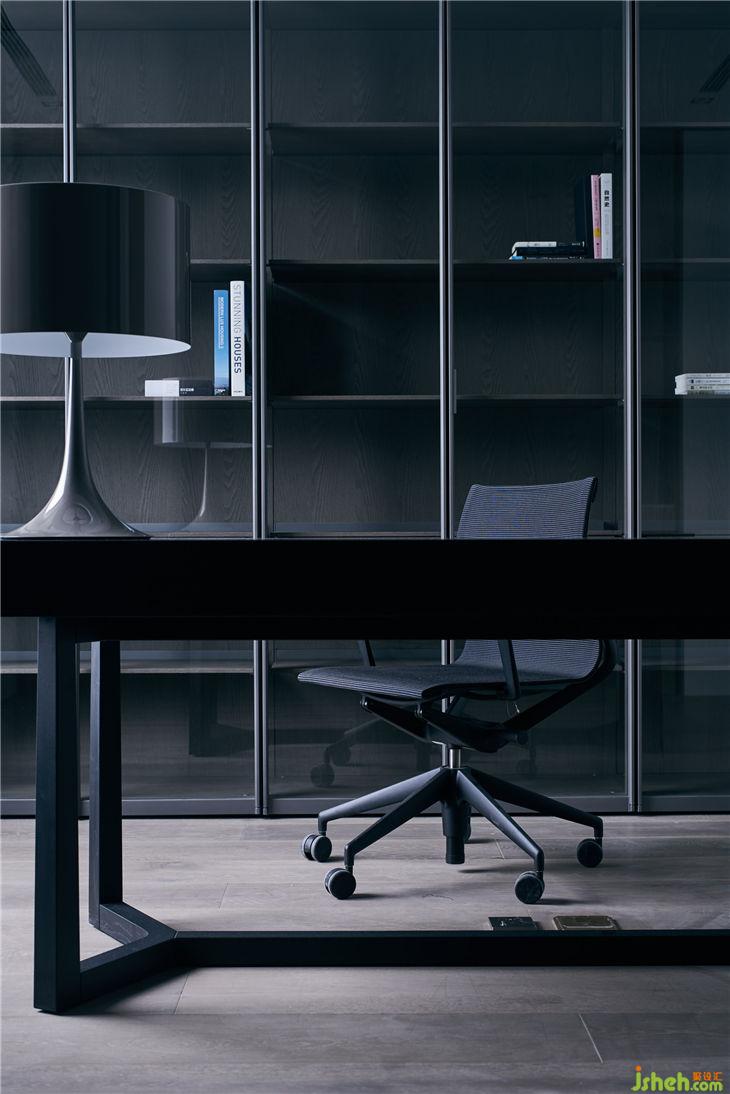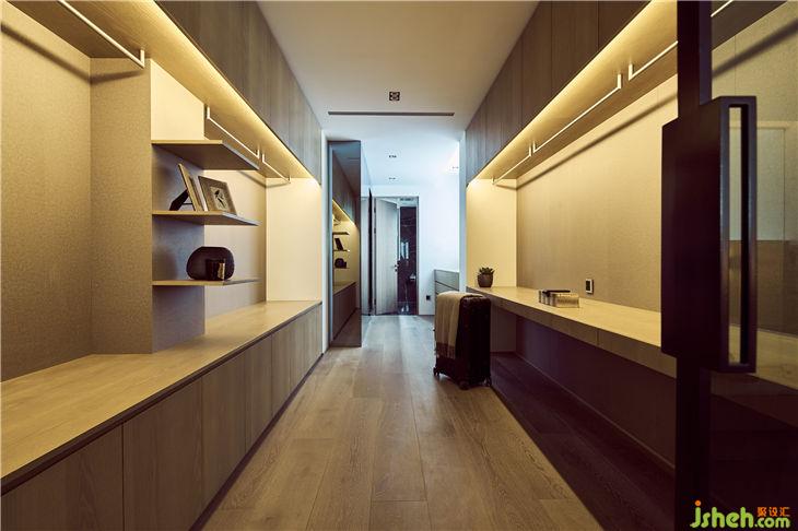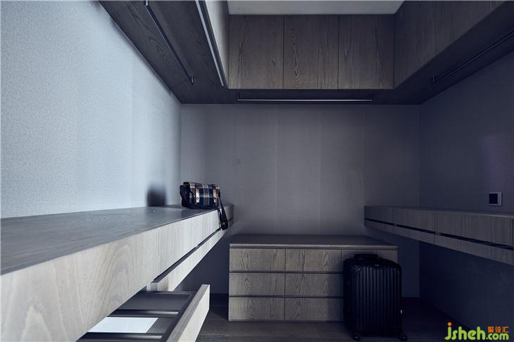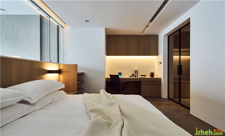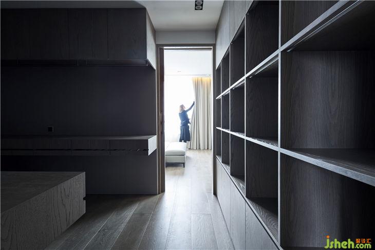 白橡木的紋理表現(xiàn)在主臥房的空間里,是林;書房里的鐵藝,是山,巧妙形成了山林間的對(duì)話;
