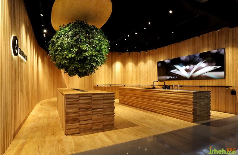 我們把這家店理解成一個(gè)關(guān)于“時(shí)間”的世界。咖啡豆是有生命的,一杯咖啡的制作,研磨、萃取及每一個(gè)步驟都需要耐心和專注。這里也是一個(gè)安靜的世界,時(shí)間在這里靜靜的流淌,這個(gè)世界的組成要素里主要是木頭,時(shí)間凝結(jié)成的生命。一道金屬弧形展架在右側(cè)墻面順勢(shì)劃過(guò),空間始終以二元方式展開(kāi),動(dòng)與靜、剛與柔、內(nèi)與外、正與反。這樣讓整個(gè)空間蘊(yùn)含某種張力。