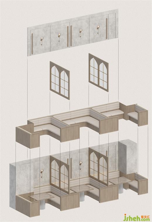 二樓定位于聚會空間,呼應(yīng)大門采用經(jīng)典的“洋蔥頭”——俄羅斯圓穹建筑造型的非透明玻璃窗格作為隔斷,深圳俄式餐吧設(shè)計(jì)保障私密性的同時,渲染著獨(dú)特的文化氣氛。