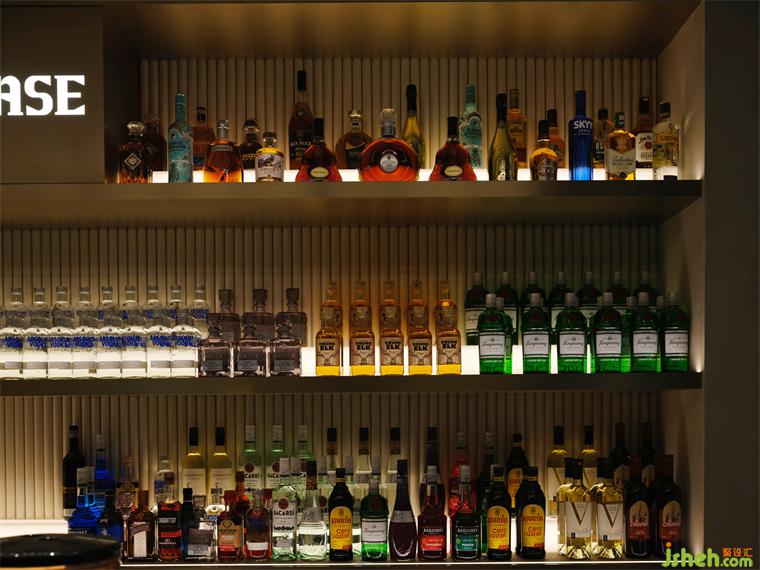空間比例恰到好處的時尚吧區(qū)成為場域內(nèi)亮麗的風(fēng)景,整齊的一字線燈將酒柜分割成秩序井然的上下空間,深圳俄式餐吧設(shè)計光束下的背景墻透露著紋理之美,簡潔醒目的金屬色One Please 增添了高級感。燈紅酒綠,虛位以待。