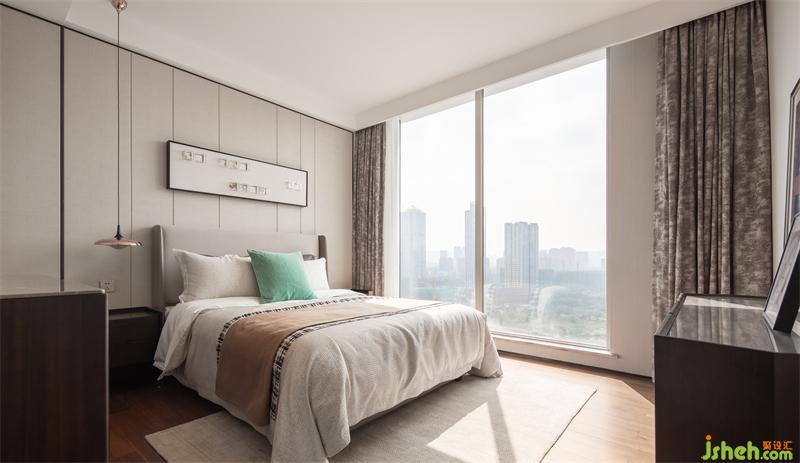 樣板房設(shè)計(jì)以儒雅平和的色彩、材質(zhì)容納主人的生活尺度,空間氛圍營(yíng)造的任務(wù)更多交由室外光景的自然表達(dá),室內(nèi)物什在自然光的加持下氤氳出溫柔而感性的空間氣質(zhì)。