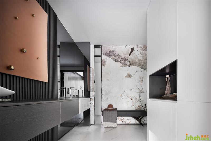 歡樂(lè)與靜謐的融合是本案的生活形態(tài),內(nèi)斂沉靜的高級(jí)灰,點(diǎn)綴輕奢潮范的暖橙色,色彩與材質(zhì)的抑揚(yáng)結(jié)合下所營(yíng)造的氛圍被全然調(diào)動(dòng)并釋出,仿佛拉開(kāi)了一出大戲的巨幕,為每一寸空間肌膚帶來(lái)神秘的敘事性。