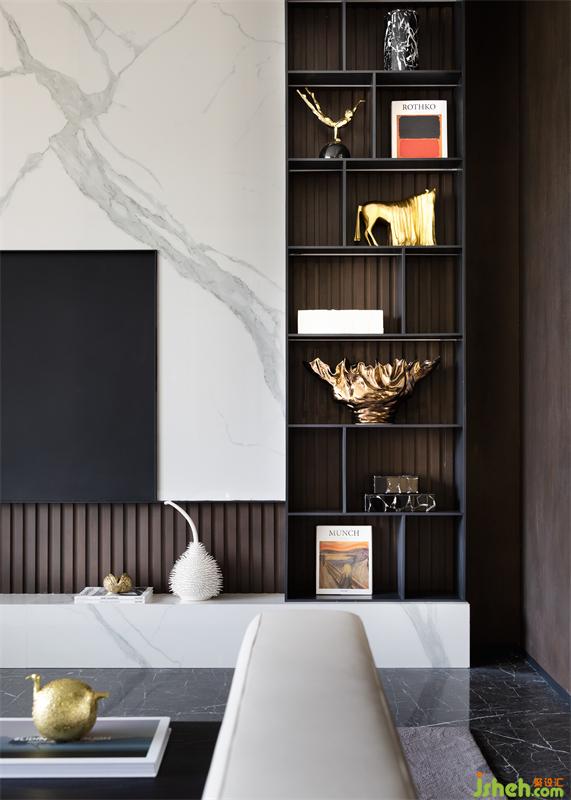 墻面使用大面積的石材和木飾面兼顧細(xì)節(jié),以低調(diào)細(xì)膩的材質(zhì)、色彩與肌理圍合,讓當(dāng)代藝術(shù)的詩意氣息流淌于其間,每種材質(zhì)的獨(dú)特性,無一不在訴說這空間的隱秘力量,突顯它的氣質(zhì)。