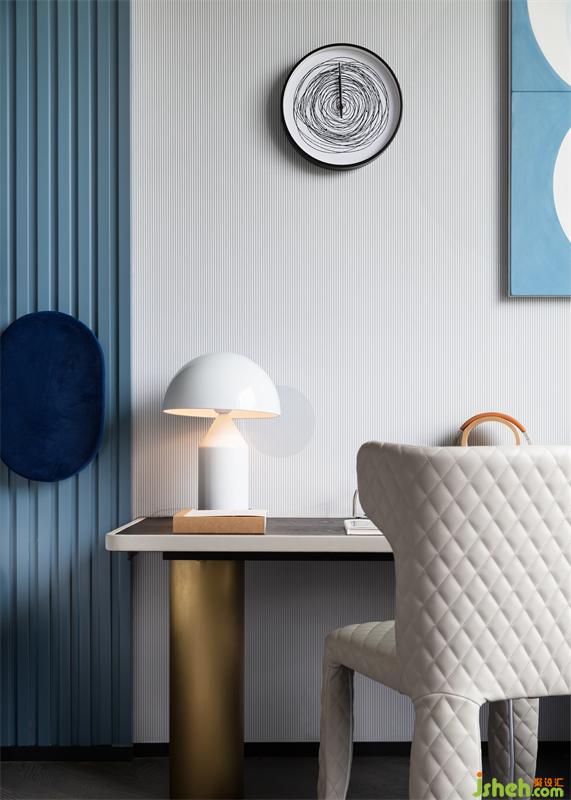 兒童房入眼是充滿趣味的無盡藍天,不同飽和度的藍色帶給人從視覺上到心理上的舒適與自由感,搭載著孩子的好奇心與活潑力,讓孩童的想象力由此綻放。