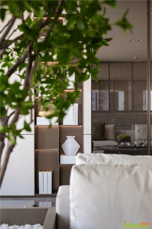 向內(nèi)走去,一側(cè)景觀樹屹立其中,攝取空間的優(yōu)美景色,西安簽約中心設(shè)計(jì)形成如嵌入鏡框中圖畫,自然與藝術(shù)帶來的多重感官體驗(yàn)在踏入瞬間悄然發(fā)生。