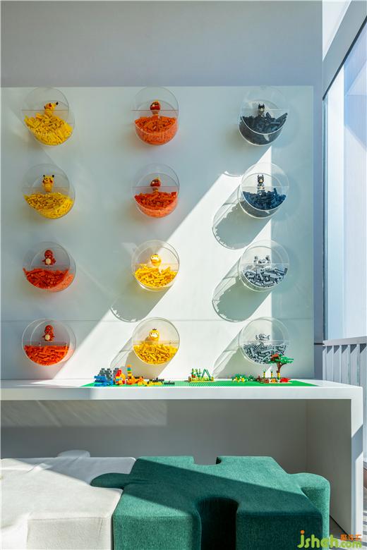 兒童區(qū)明朗的色彩勾勒出卡通化的語素,幾何座椅、五彩樂高,西安簽約中心設(shè)計實現(xiàn)藝術(shù)與趣味的融合,營造出一個夢想天地。
