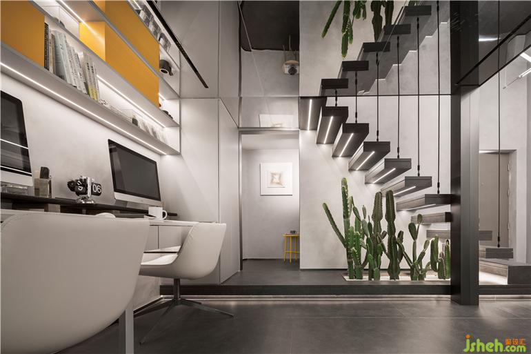 工作室入戶是從外界進(jìn)入到環(huán)境的過渡區(qū),入口右側(cè)的3D背景墻面迅速抓住人們的眼球,萬科天府夢(mèng)想城營銷中心設(shè)計(jì)讓空間增添了十足動(dòng)感,為Robot主題做好鋪墊。接待休息區(qū)造型簡潔,高級(jí)灰營造出簡約格調(diào),黃色作為點(diǎn)綴,豐富了空間色彩層次,溫暖又啟發(fā)思考。開放辦公區(qū)方便互相交流,鮮活的社交氣息,使空間氛圍變得親近而有趣。盡頭處意大利藝術(shù)家Biasi的作品《門》以虛擬運(yùn)動(dòng)學(xué)的概念呼應(yīng)Robot的主題。迷你樹洞區(qū)以微水泥打造一隅輕松之地,是工作之余的加油站。